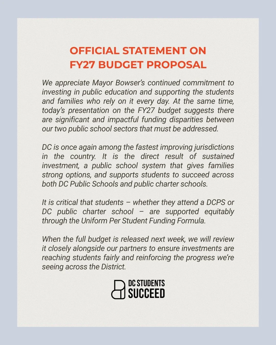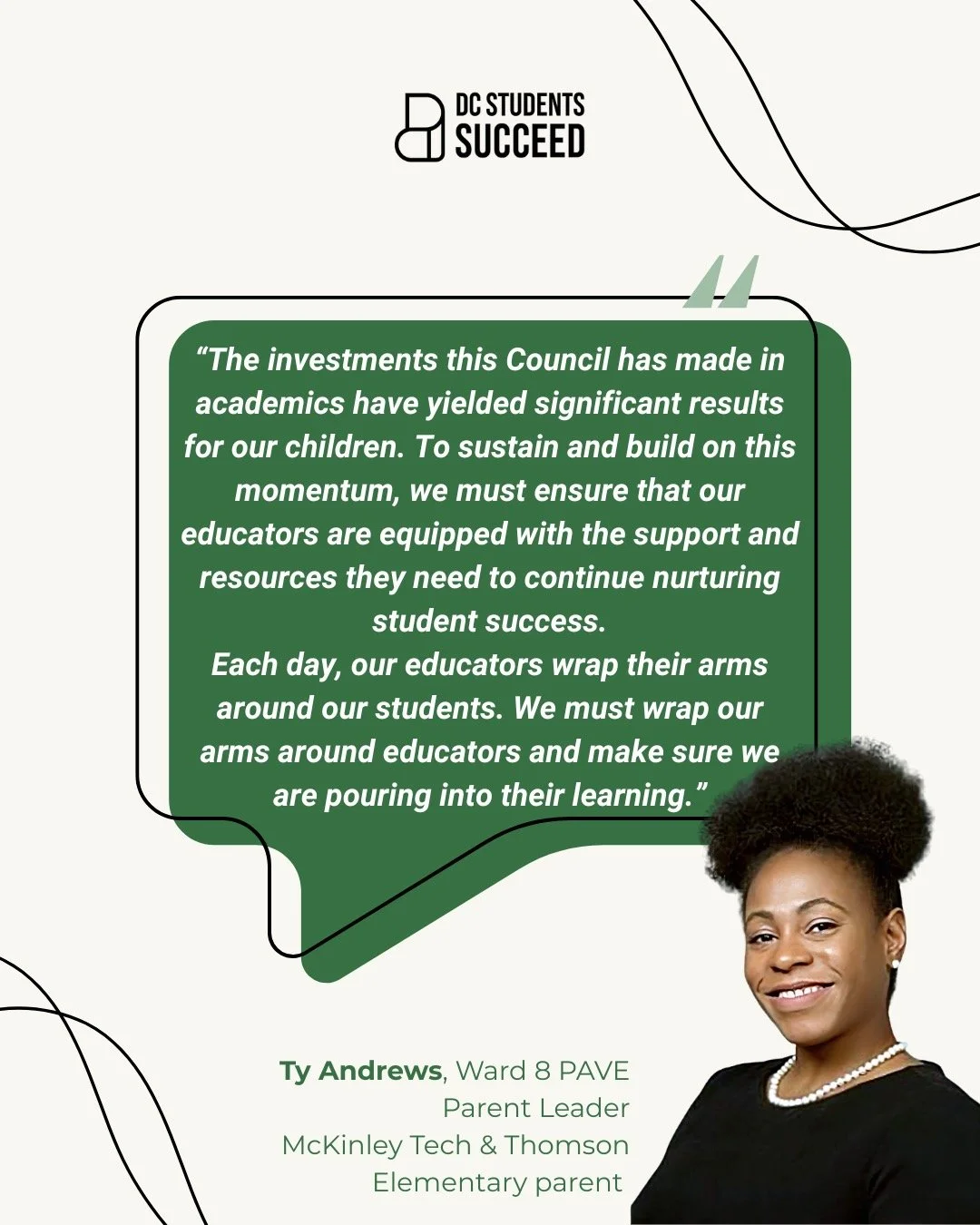 DC Students Succeed brings together individuals — students, families, DC residents — and organizations in support of creating excellent and equitable public schools for all students. We believe that students come first and that their needs must be at the center of our work. We work in service of students, especially Black and brown students.