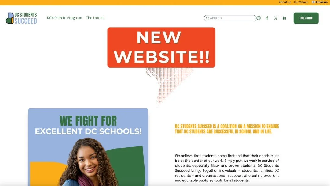 DC Students Succeed brings together individuals — students, families, DC residents — and organizations in support of creating excellent and equitable public schools for all students. We believe that students come first and that their needs must be at the center of our work. We work in service of students, especially Black and brown students.